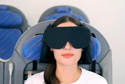 This product attaches to the headrest of your seat, and serves as both a blackout eye mask and head support. It eliminates head-bobbing and thus the need for a pillow, and rolls up into a neat drawstring bag. I have been on a few long and difficult flights where this has blocked out the lights and noise of the plane, providing an opportunity to rest and recharge or sleep.